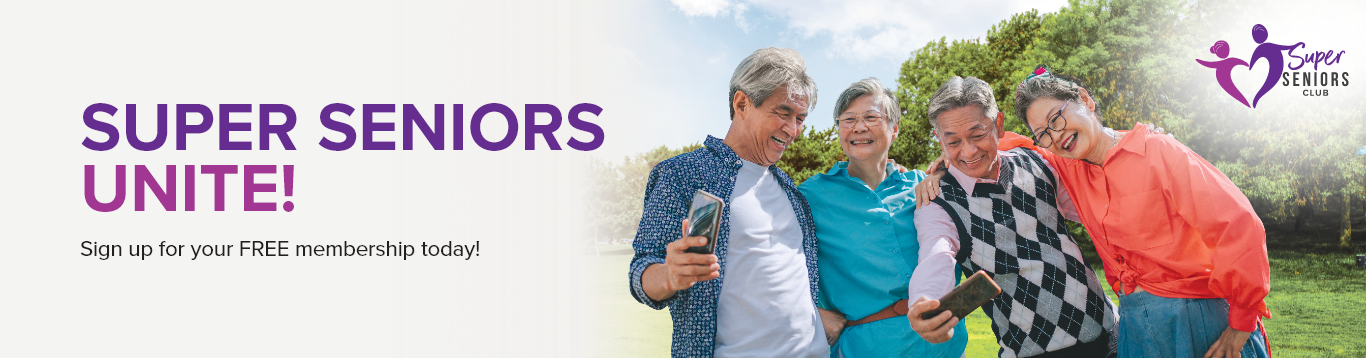 Stay healthy and active with the Super Seniors Club and get exclusive discounts and privileges! From special prices for Health Screening packages to exclusive invitations to events and activities, be part of the Super Seniors Club!
